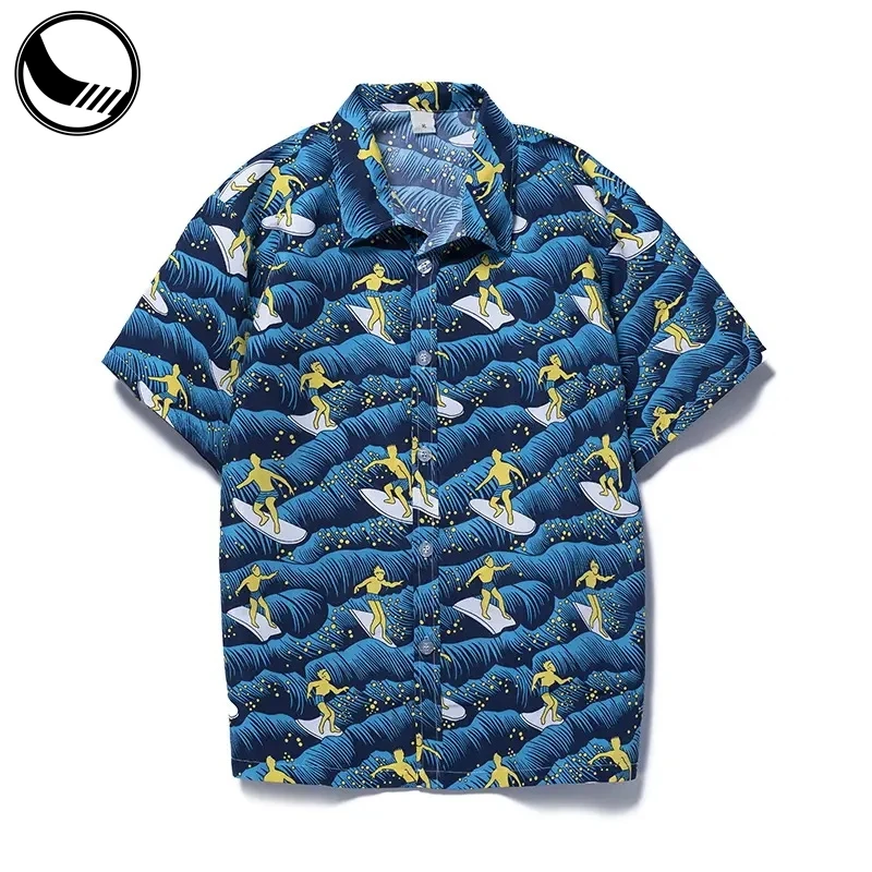 Silk Hawaiian Casual Shirt Beach Summer Shirts Men Golf Button up Custom Printed Hawaiian Shirt