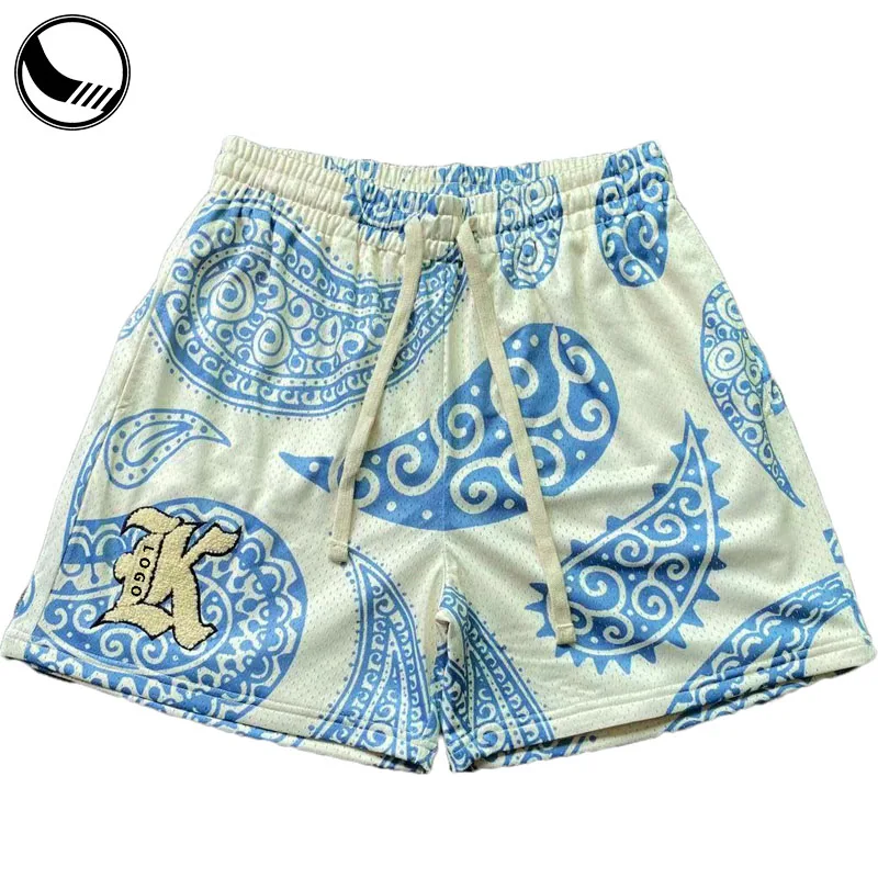 Wholesale Custom Logo Sports Sublimation Print Trendy Style Polyester Basketball Casual Elastic Gym Running Men Mesh Shorts